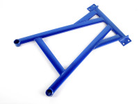 Следующие по популярности — это нижние передние и задние распорки. Передние призваны увеличить жёсткость подрамника: большинство из них распирает нижние балки либо крепления реактивных рычагов. Это хорошо сказывается на остроте рулевого управления и в торможении.